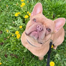 Happy ist eine besondere Französische Bulldogge mit starkem Charakter und klaren Bedürfnissen. Er zeigt ausgeprägte Statusaggression und sucht daher ein Zuhause ohne Kinder (auch keine Teenager). Happy braucht eine erfahrene, souveräne Führungsperson und kann nur zu einer selbstbewussten Hündin vermittelt werden – keine Rüden.